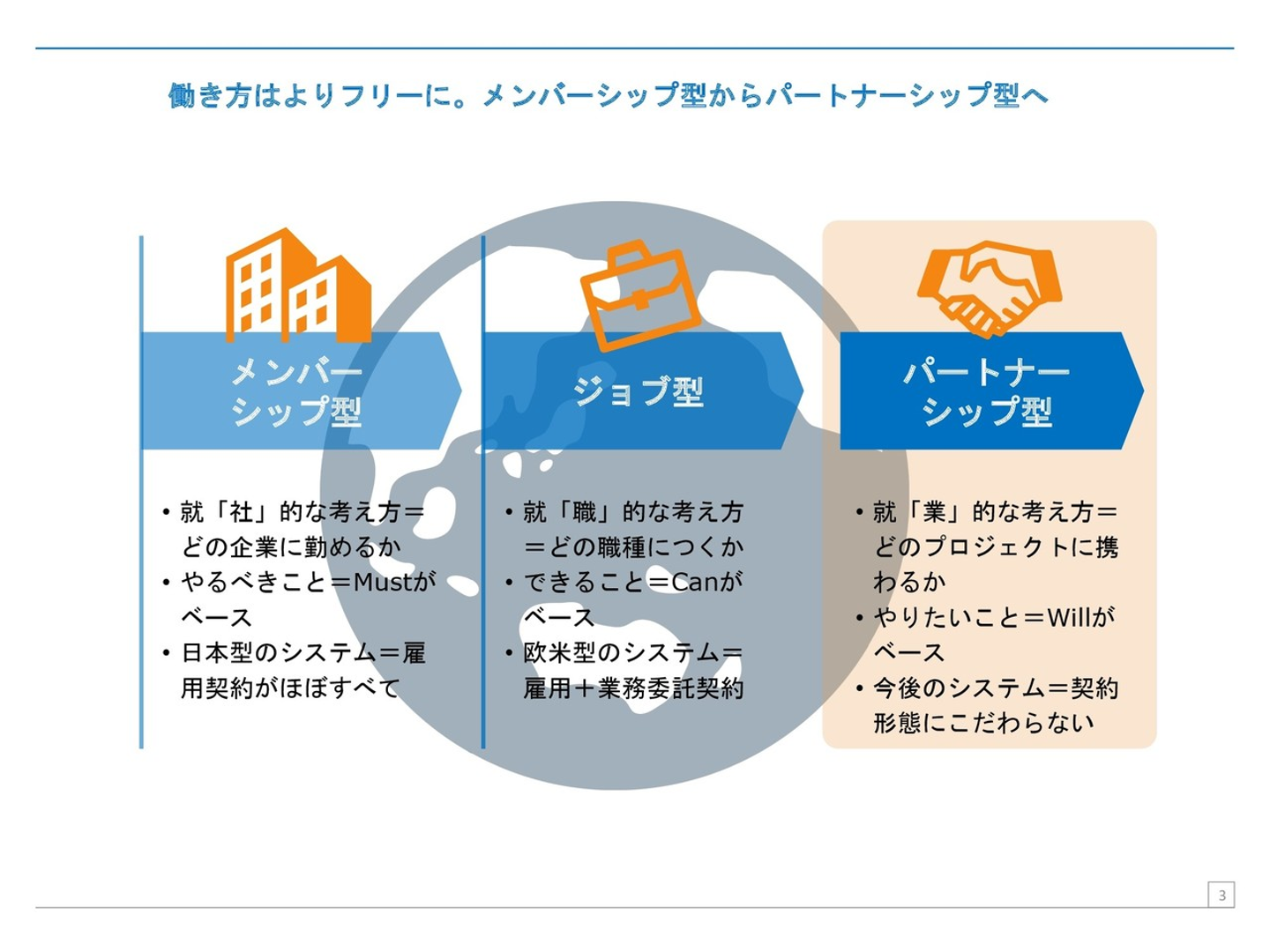 そして、人手が足りないときに「まず正社員を採用」する、という先入観。高いスキルを持ち、プロフェッショナルな仕事をするフリーランスが、世の中に本当に多く存在します。労働力人口が減り続ける中で、普通に考えて、増え続けるフリーランスや副業を積極的に活用しない手はないと思います。