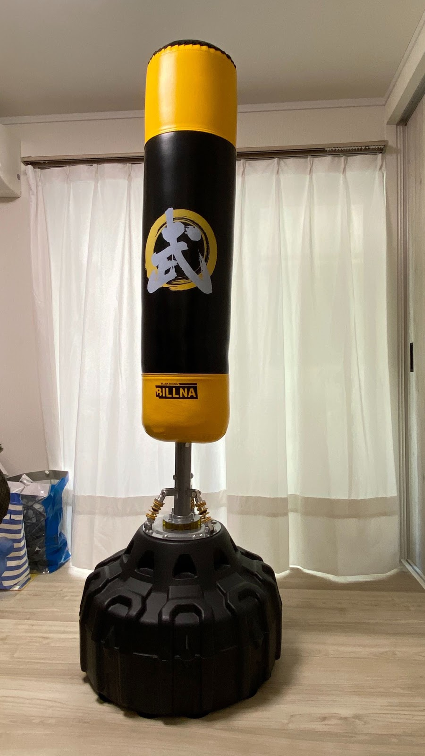運動不足解消のために購入したそうです。運動不足解消でサンドバックという発想が面白いですよね!たまにお子さんがよじ登って遊んでいるそうです。