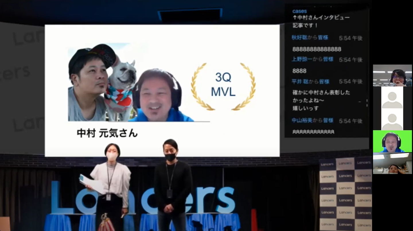 ランサーズ では四半期に一度ランサーズ 社員と一緒に働く登録フリーランス(以下ランサーさん)の中でランサーズ の行動指針にそって活躍している方を表彰させていただくMVLという制度があります。普段一緒に働いてるフリーランスの方が表彰されるとあって、社員の表彰パートより盛り上がりますw今回は2020年度3期目のMVLを獲得した中村さんと推薦者の櫻井さんにお話を聞きました。