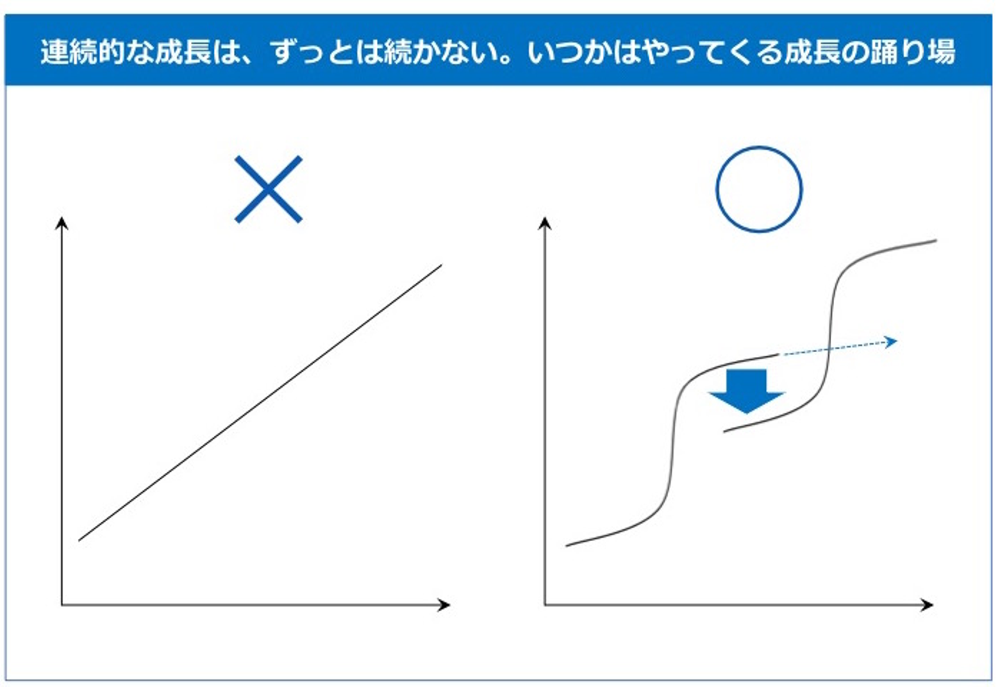 それは、「連続的な成長はずっとは続かない。どこかで踊り場を迎える」ということです。ある意味、企業の成長もこれは同じだと思います。