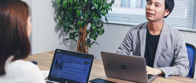 オンラインMTGの設定によりリモートワークを感じさせないコミュニケーションを全国どこにいながらも可能です。