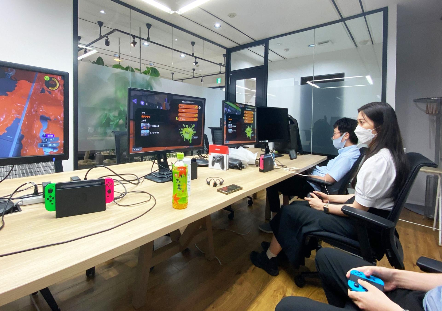社内には部活制度もあり、私が所属しているゲーム部では定期的に集まってゲームをしていますし、ゲームの新作が出るときはチャットが盛り上がります笑 金曜日の仕事終わりに会議室にモニターを持っていって、4人でスプラトゥーンをやることもありました。
