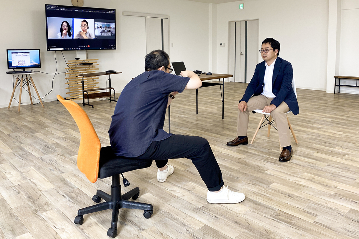 リモートスタッフとオンラインで繋ぎながらの作業現場でした。