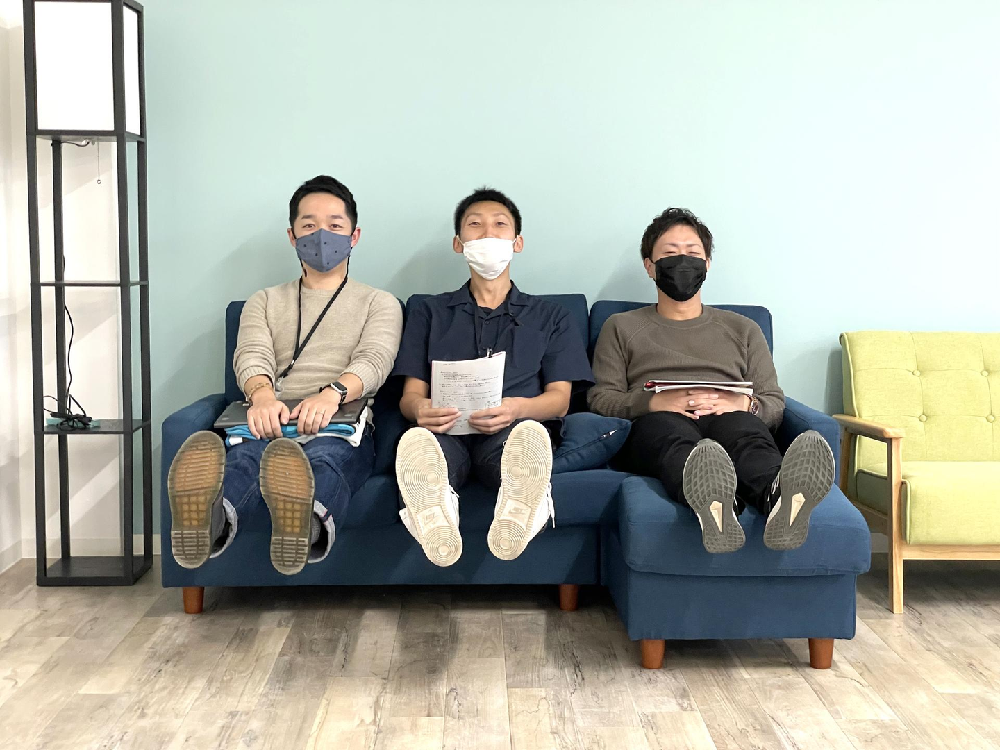 2F共有スペースでのMTG後、「ソファが届いてる!!」と興奮した3人。。