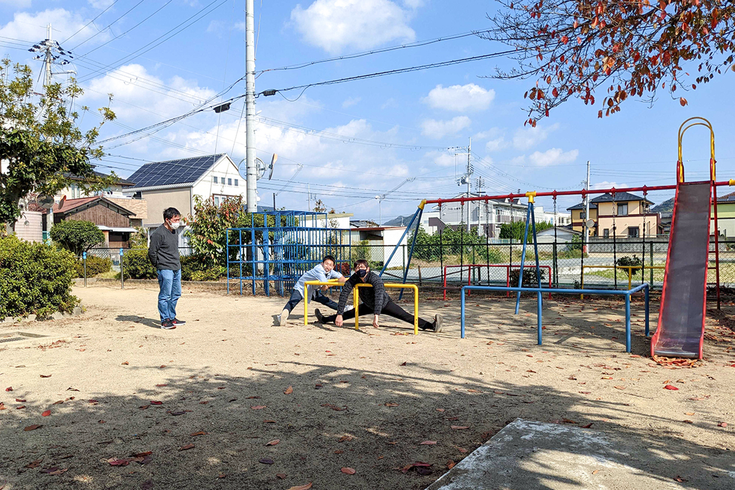 こちらは休憩中です。本社のすぐ近くには素敵な公園があります。