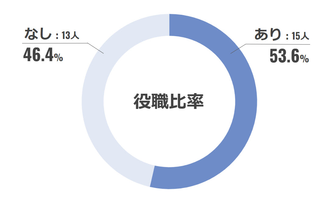 ちなみに全社での役職比率は、「役職あり:59.1%」「役職なし:40.8%」となっています。