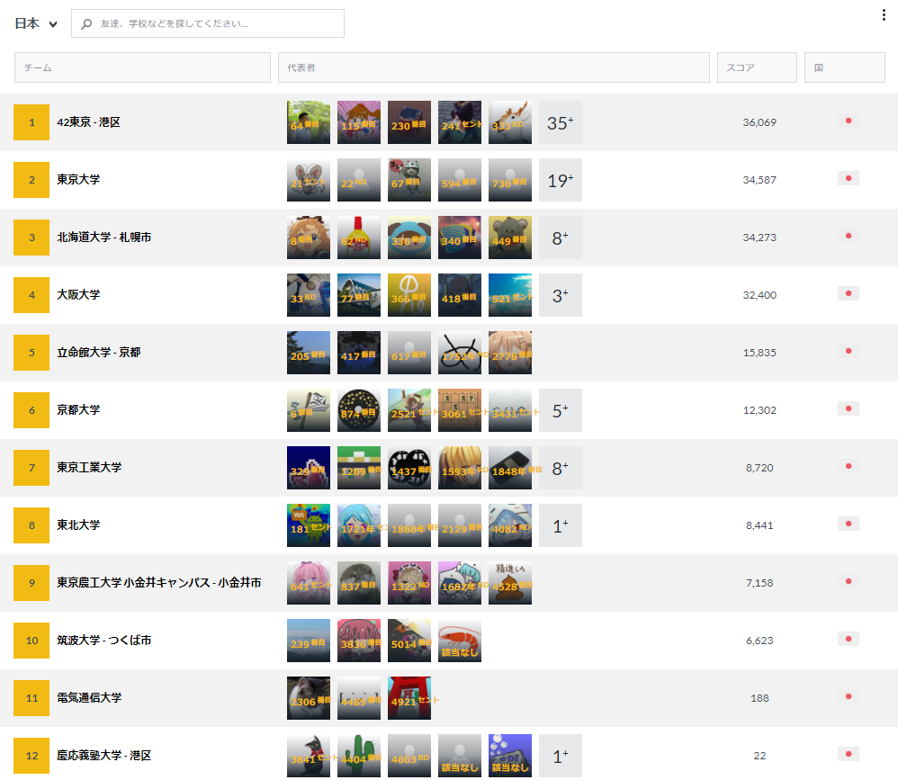 また、今回は学部時代の母校も妙に頑張っていました。前回参加時は人数が少なすぎて集計対象外だったのですが・・・。