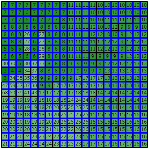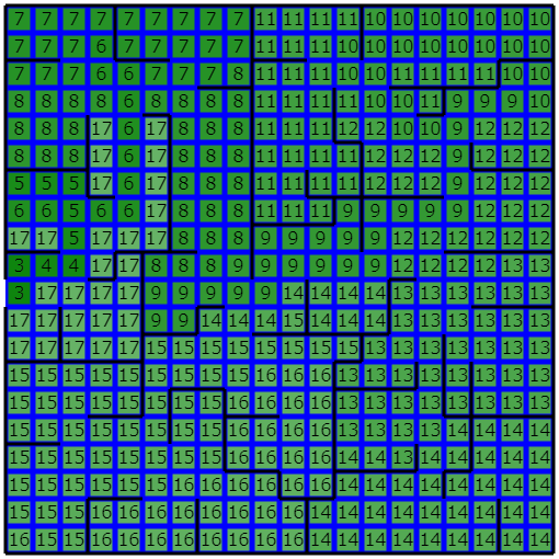 - 以下のように区画分けされた 20 * 20 の正方形で示される土地が与えられます