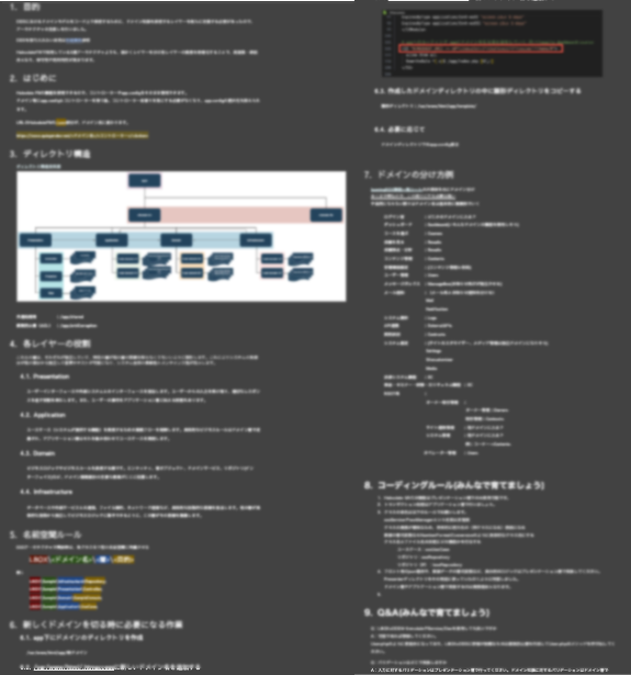 社内展開するにあたり、各レイヤーの役割や想定されるQ&Aを資料にまとめたり、サンプルコードを配布しました。
