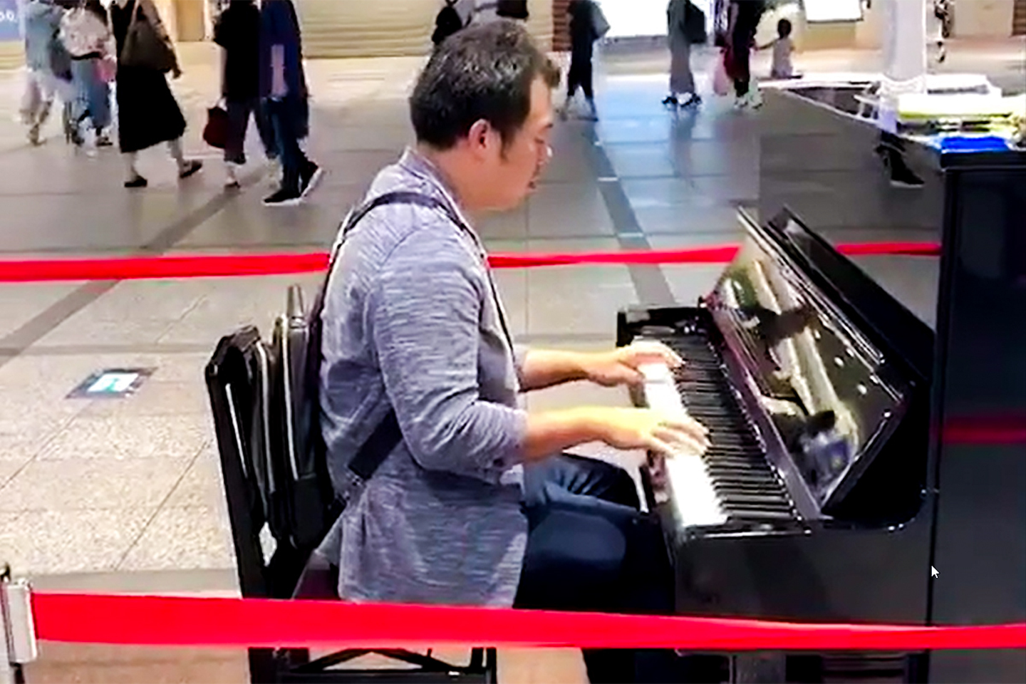 ▲ デュオこうべ浜の手 デュオドームでのストリートピアノの演奏の様子