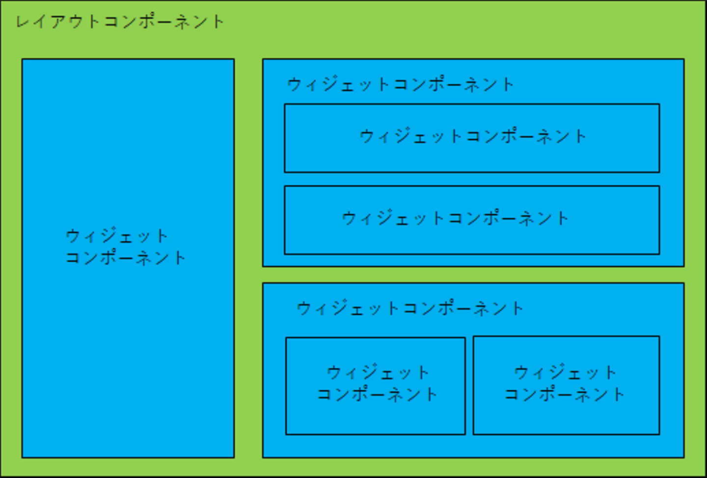 - ウィジェットコンポーネントは、レイアウトコンポーネントの中に配置される