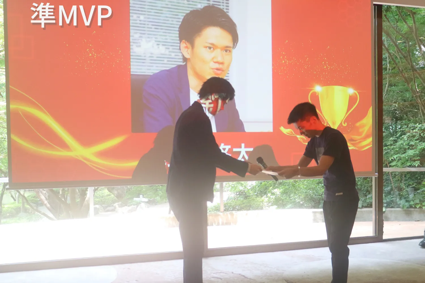 自身の成長だけでなく会社の成長を考えられるビジネスマンは、市場において非常に価値が高いです。こういった発想を新卒二,三年目の時点で持てるようになったのは、L&E Groupが若手を抜擢するカルチャーだからこそだなと、改めて感じます。新卒採用責任者となった初年度で歴代最多人数を採用することができ、全社総会で準MVPをいただくことができました。