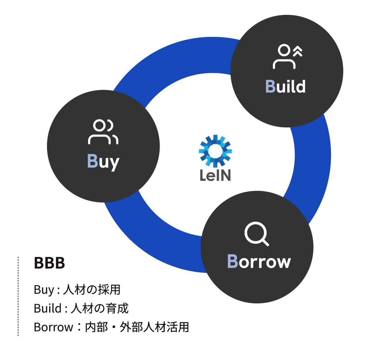 人事側が担当するBuy(採用)・Build(育成)、部門側がリードするBorrow(活用)は、現在別々に進められていることが多いです。