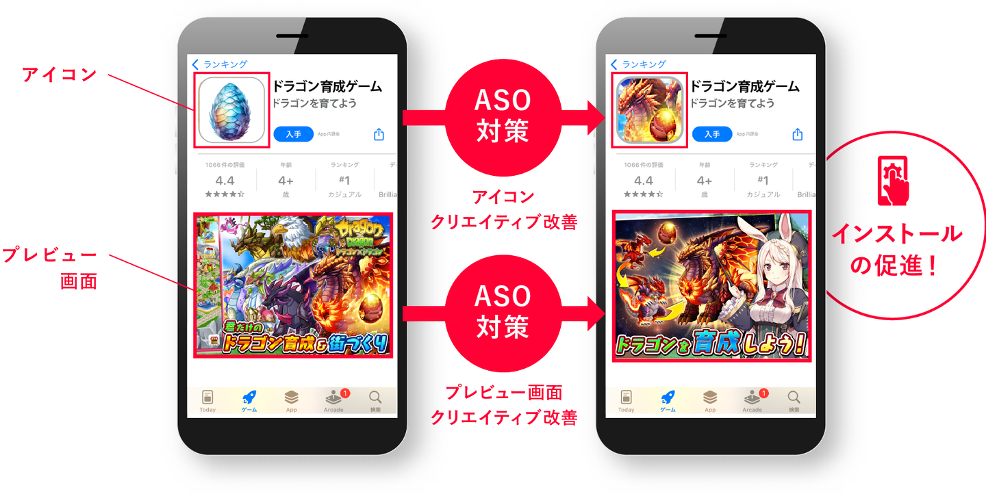 ここで、私たちが行っているASO施策について、この場で2つの例をご紹介します。