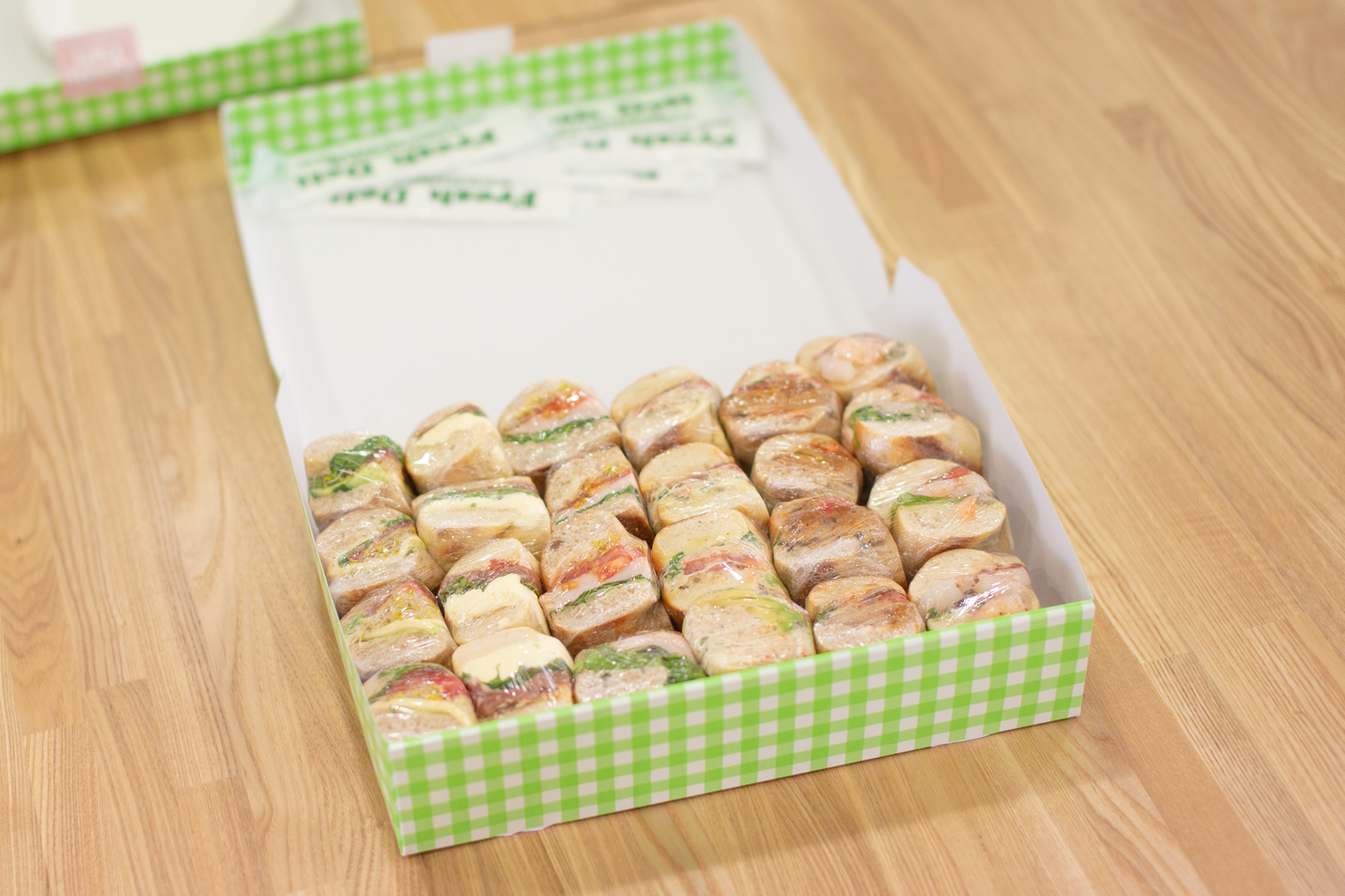 ▼ハム、チーズ、エビ、ツナなどいろんなサンドイッチを用意。