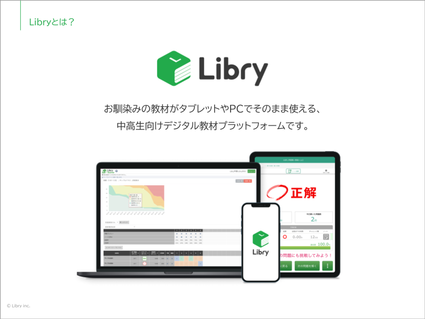 「Libry(リブリー)」という中高生向けのデジタル教材プラットフォームを開発しています。