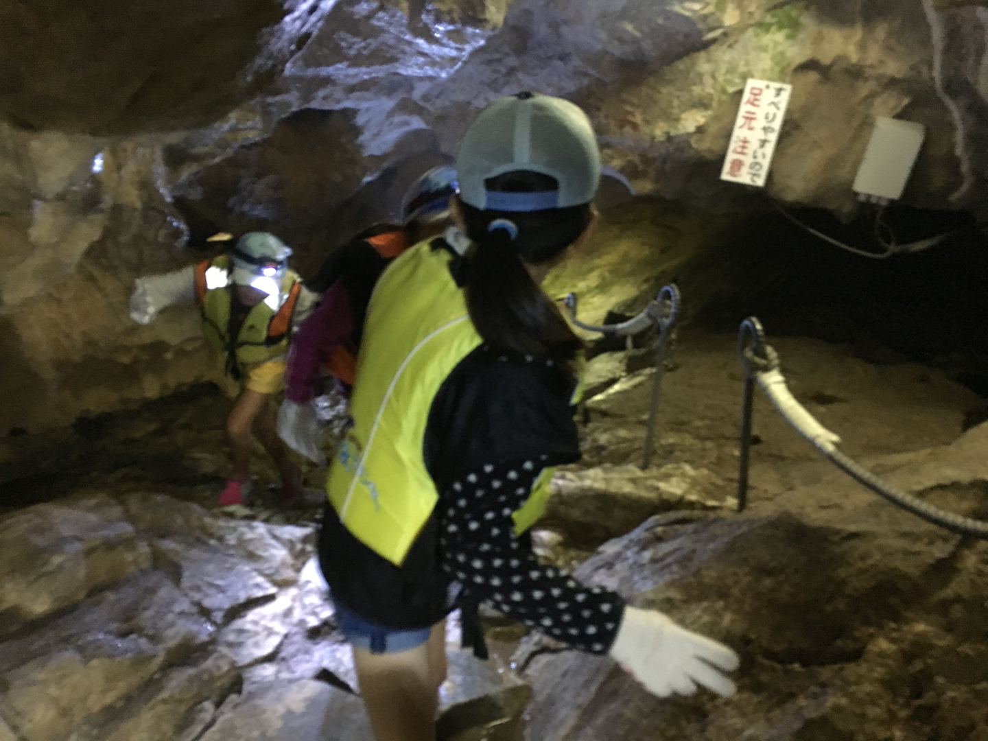 中は暗く道も狭いので、引率者も子どもたちも全員ヘッドライトを装着しています( -`ω-)/ まさしく“探検隊”!!これだけの鍾乳洞ができるまでどれだけ年月が必要かと想像すると気が遠くなりそうでした…。
