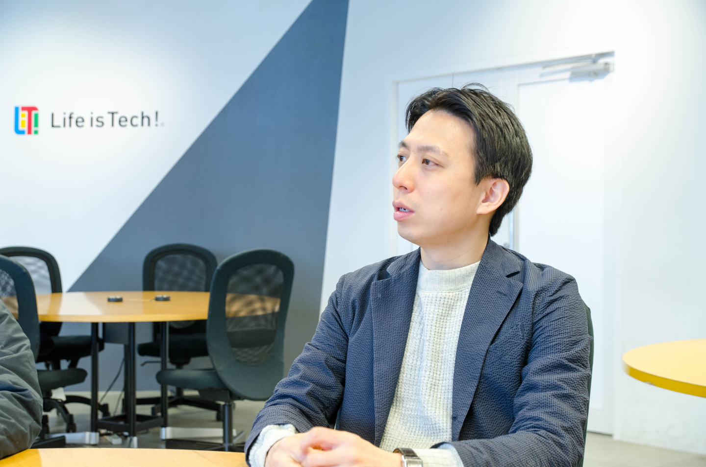 ライフイズテック執行役員 事業開発Div事業部長。株式会社リンクアンドモチベーション出身で、讃井とは先輩・後輩の間柄。高校生の頃から教育に関心があり、学校を建てる目標を持っていた。讃井から誘われ見学したライフイズテックのキャンプに感銘を受け、2015年に入社。キャンプなどのリアルサービス事業部長を務めたのち、2019年の10月からBtoBの事業開発を担当している。