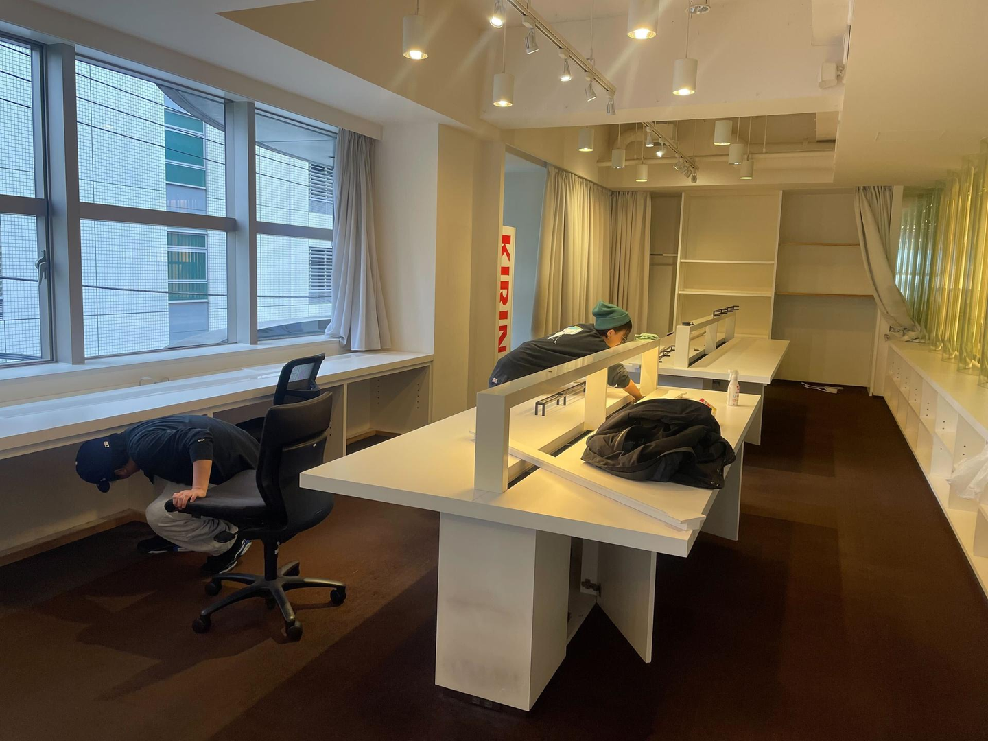 18日は引っ越し業者が作業を担当し、同時に内装工事も進行。19日は旧オフィスの大掃除と、新オフィスでのモニター設置や荷ほどきを行いました。