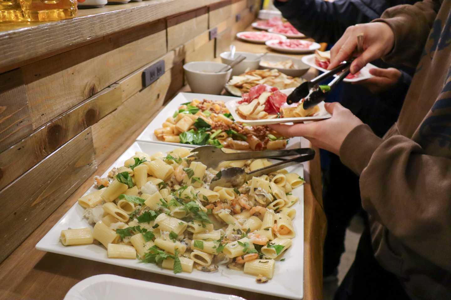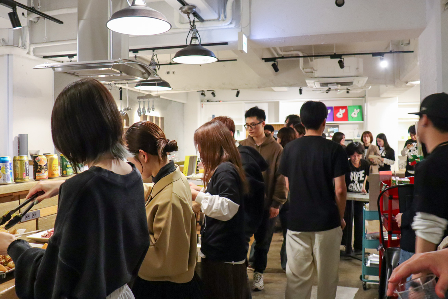 100名近くの参加者ということもあり、料理には長蛇の列が……。