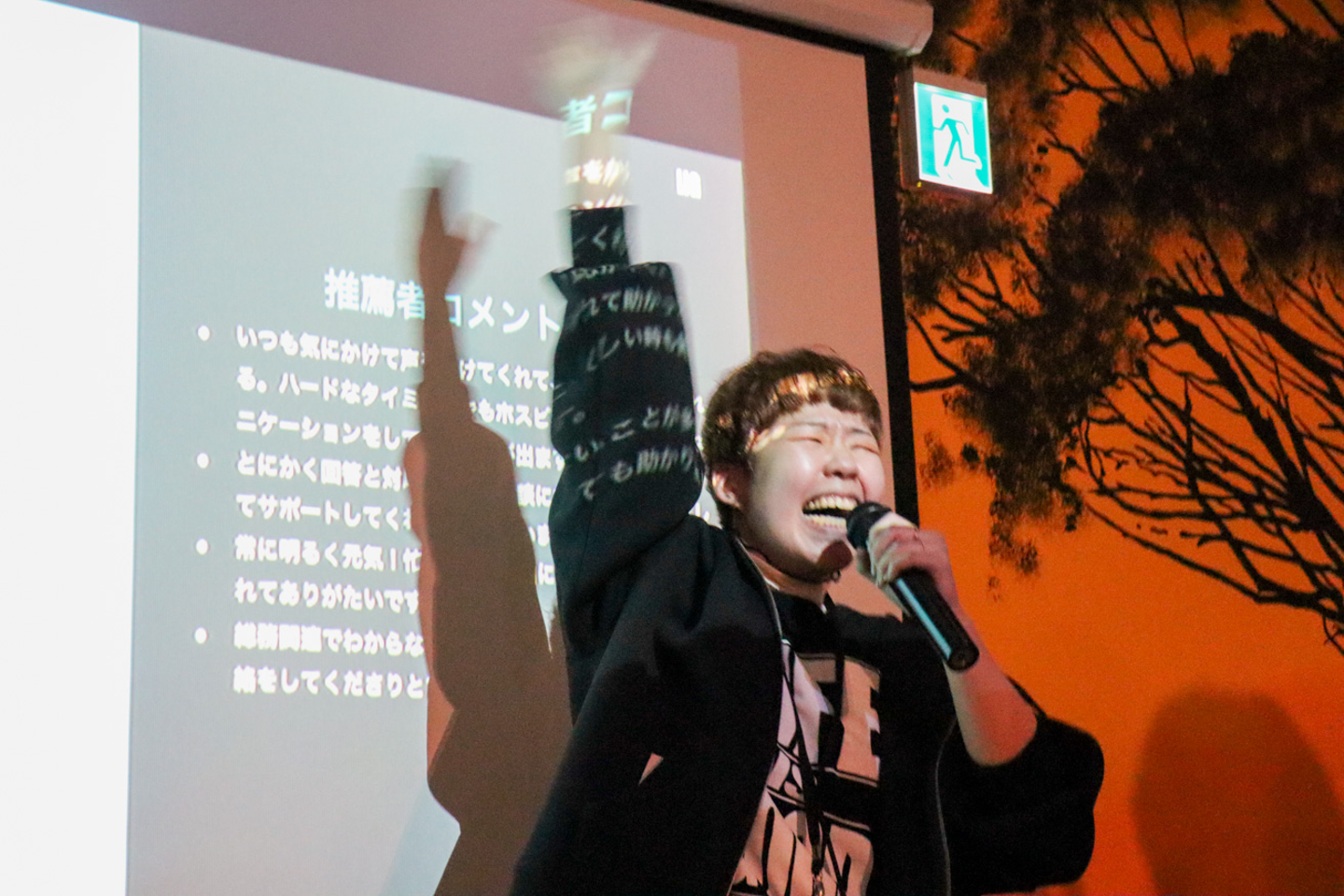 夜もすっかり更けて……。ここからは、活躍した社員にちょっとした賞品が贈られる、表彰式の様子をお届けします!