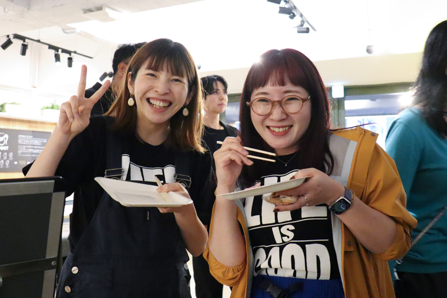 前半戦が終わり、ここでいったん休憩タイムへ。ドリンクはイベント開始時から自由に楽しめるスタイルでしたが、休憩にあわせて、ついにフードも解禁!