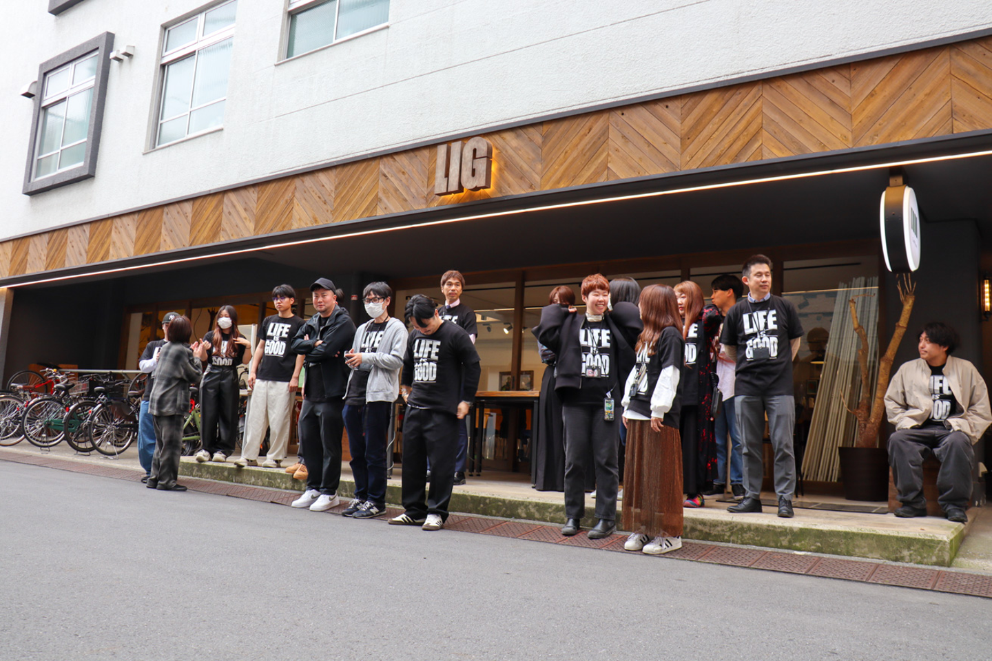 半年に一度、全国のメンバーが一堂に会するキックオフ。全社のメンバーがそろう貴重な機会ということで、開始前にはLIGビルのエントランス前で集合写真をパシャリ(このときの一枚が、記事のアイキャッチ画像にもなっています!)。