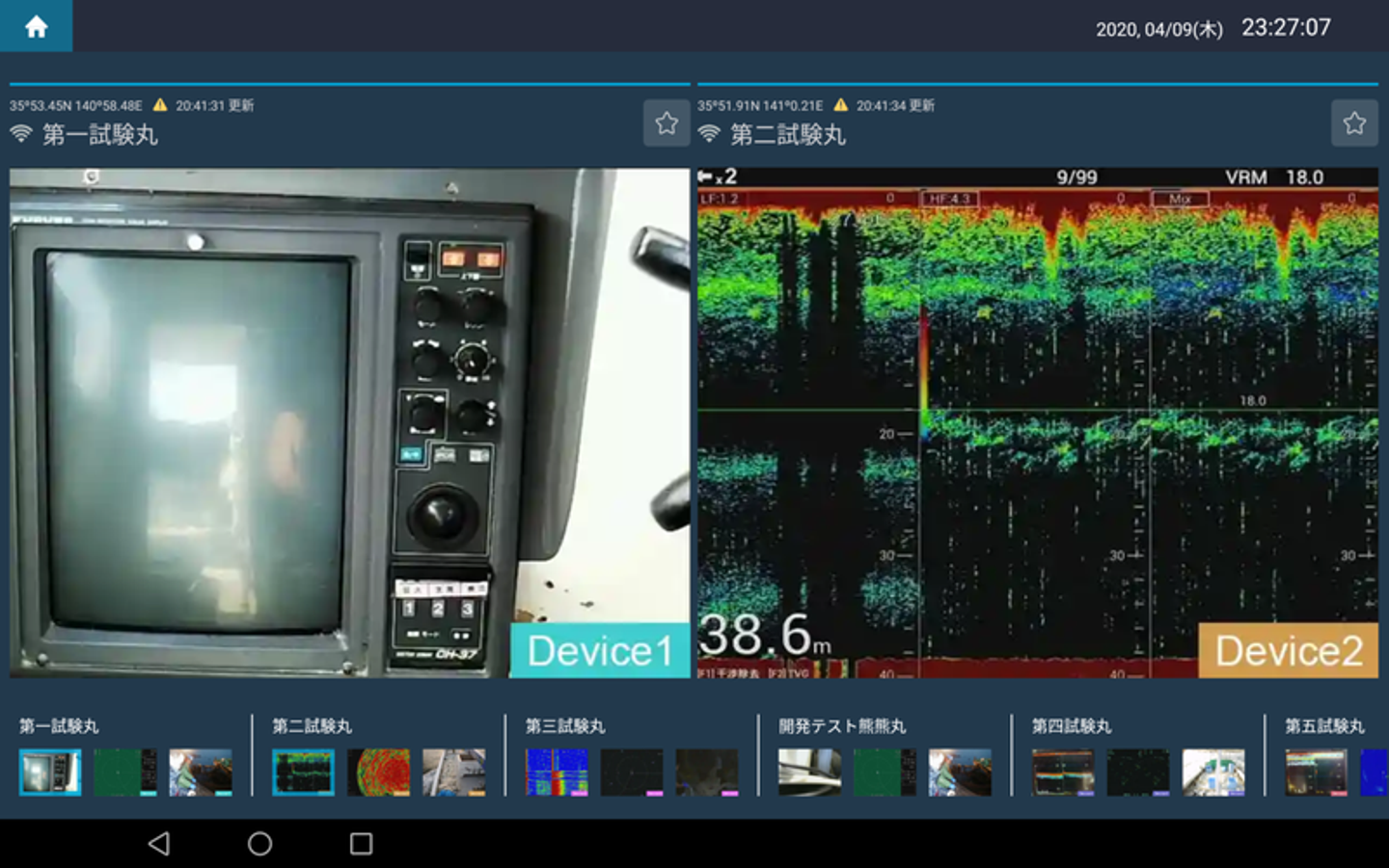 痛感だけして終わりというわけにはいきません。善は急げということで、2隻の魚探を並べて拡大表示できる画面を最優先に開発しております!