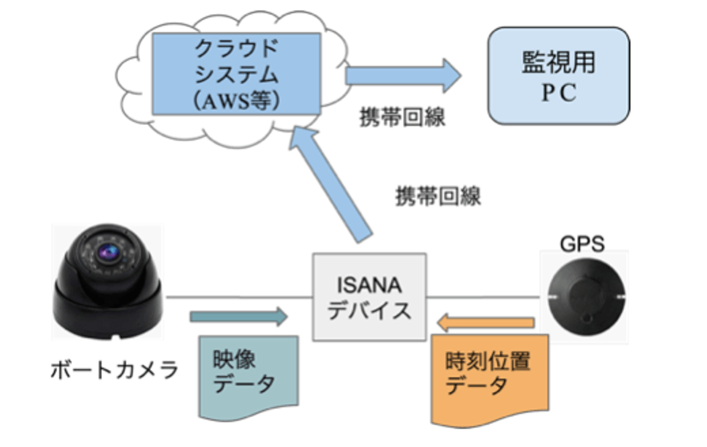 さらにこのボートにISANAを搭載することで、船上の様子とGPS情報を遠隔から確認できるようになっています。