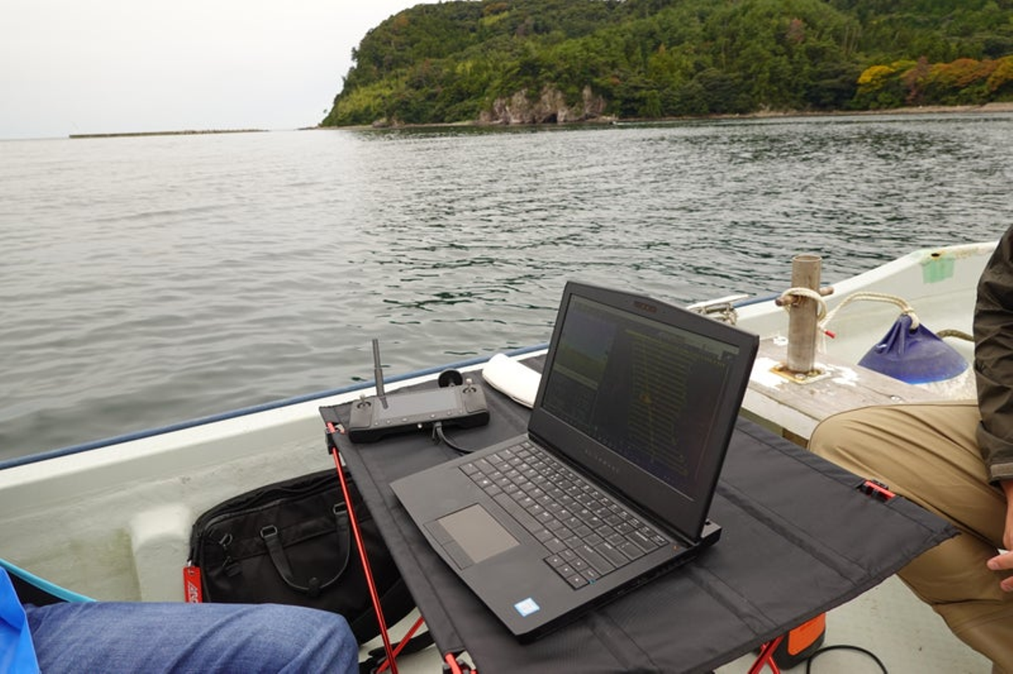 近い将来、ドローンボートが魚探やソナーなど、漁撈機器のひとつとして導入できるような位置づけを目指しています。