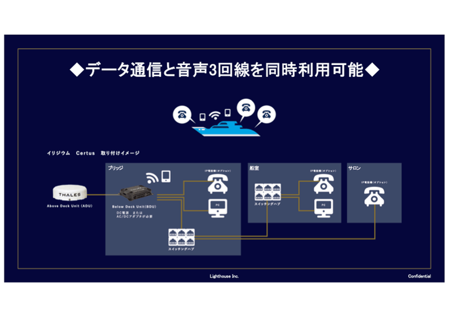 またイリジウム サータスであればブリッジ内だけではなく、船員室や食堂、機関室まで通信範囲を拡張できます。