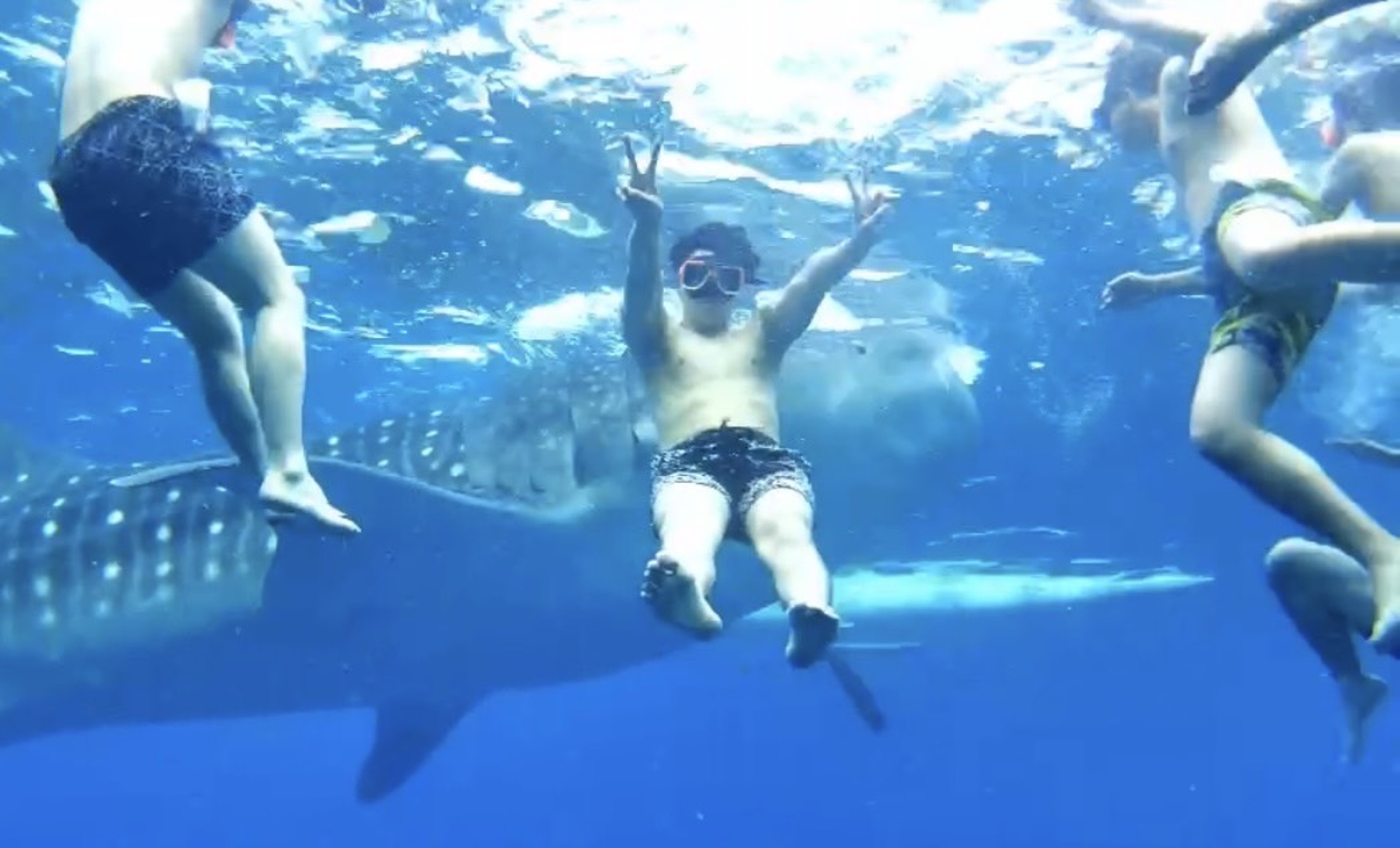 全員が車の中ではダウンしていましたが、目の前に現れたジンベエザメを見た瞬間、疲れなんて全部吹き飛びました。