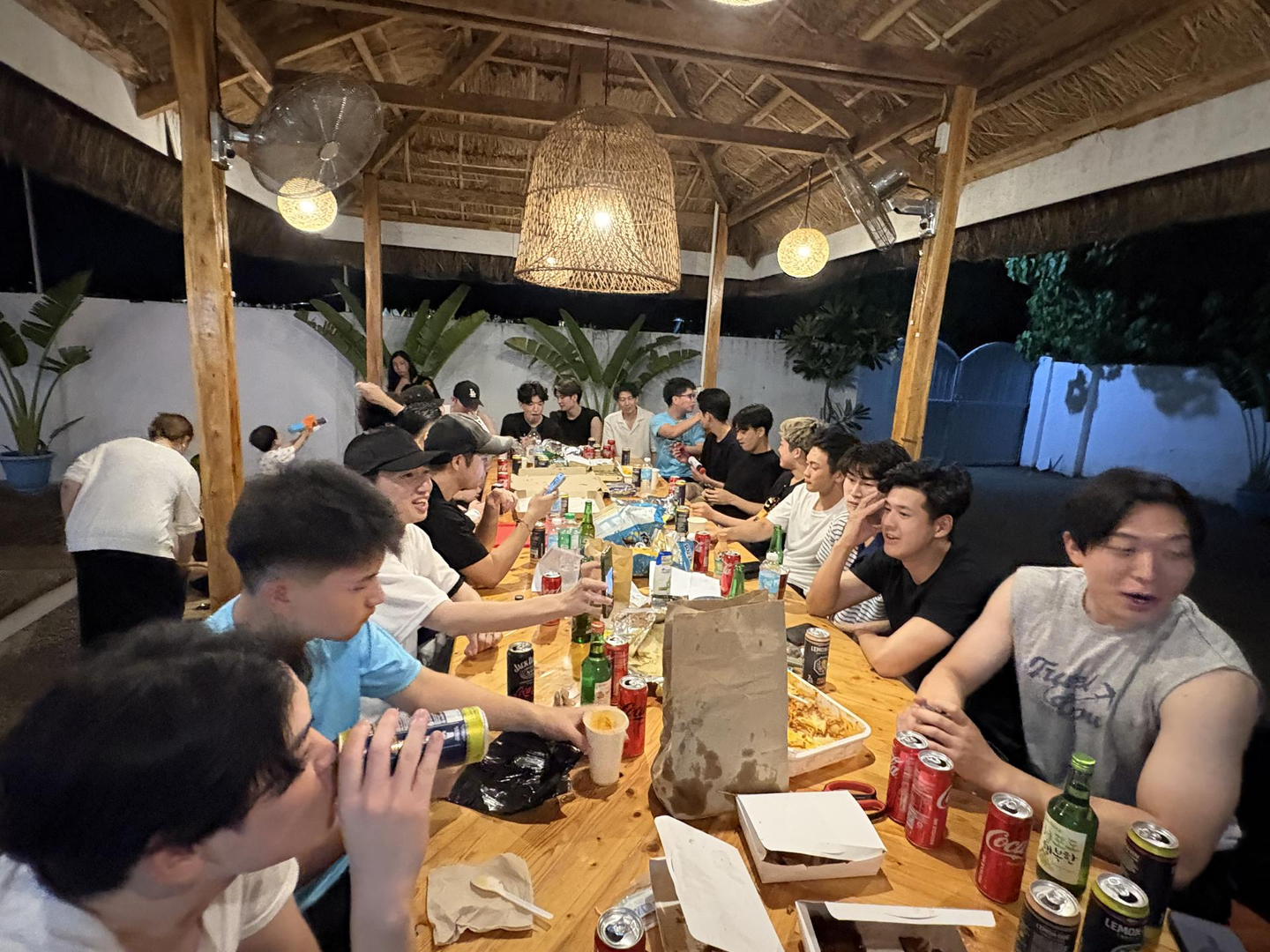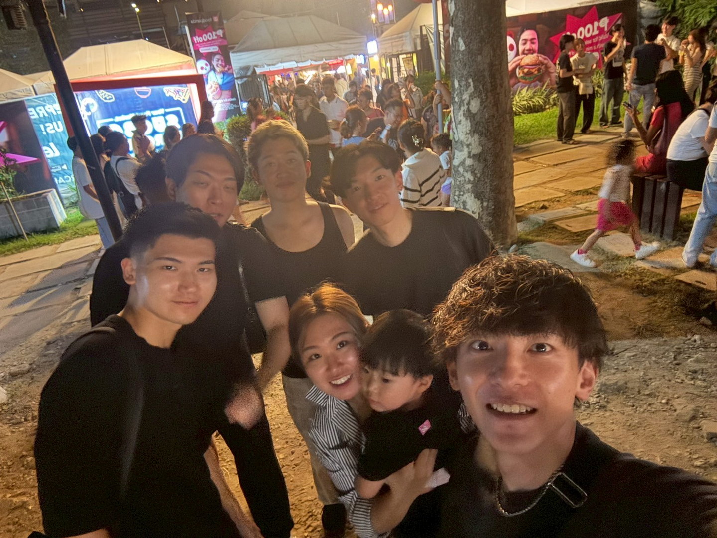 昼間はジンベエザメに会った組、街ブラしてた組、それぞれ違う時間を過ごしたけど、夜は全員で集合しました。