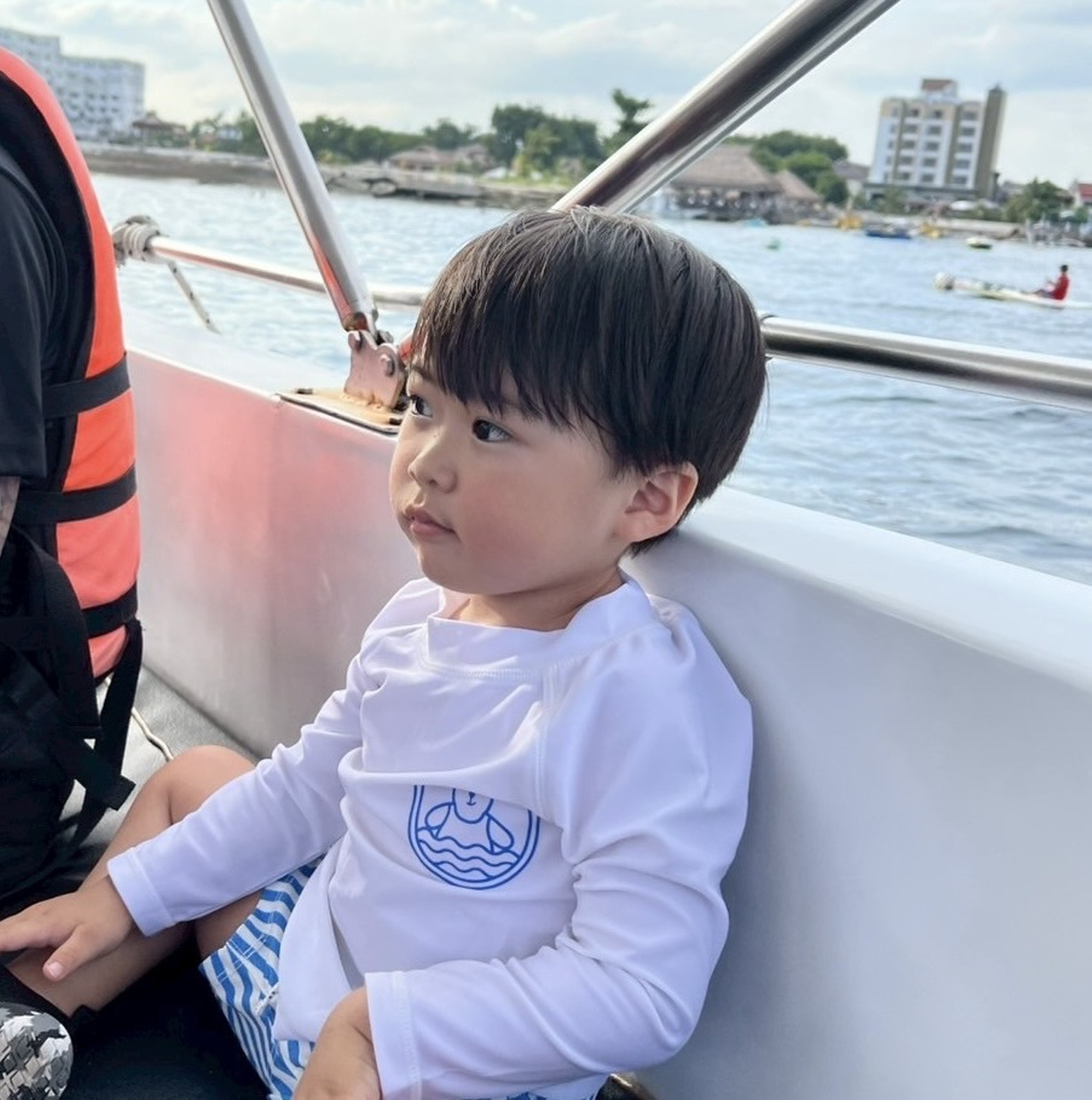 パラセーリングの船に乗って海を満喫していました!(笑)