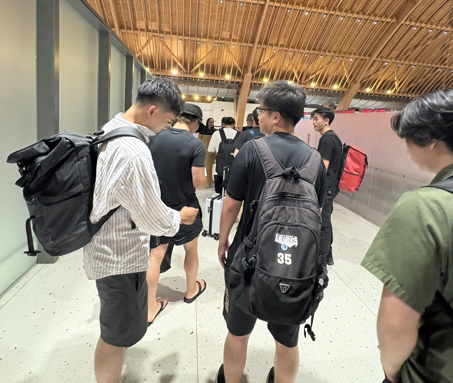 全員無事にチェックイン完了!出国審査を終えて、安堵の様子です。