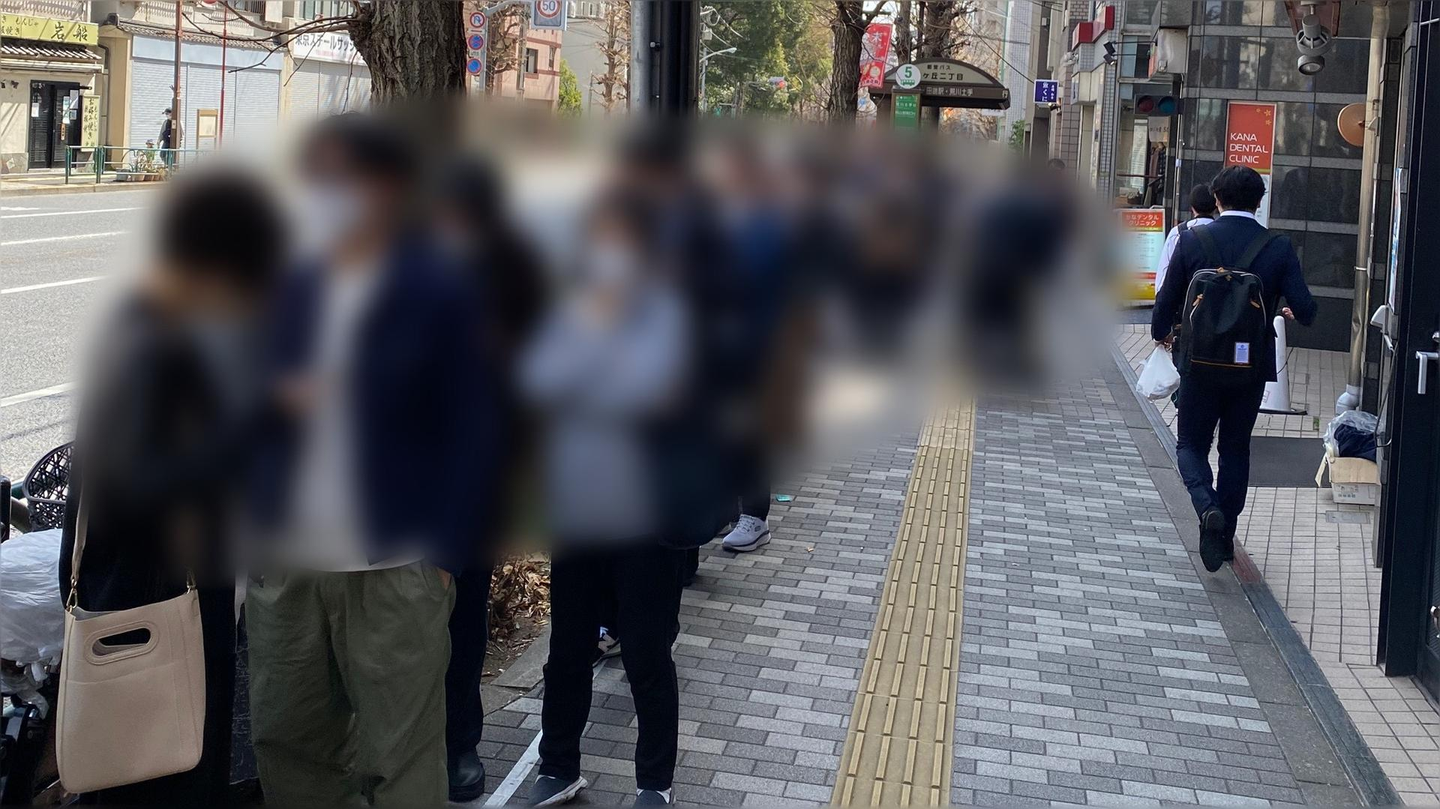 私は店側に並んでいるのですが、何人目からは道路側に移動して並びます。