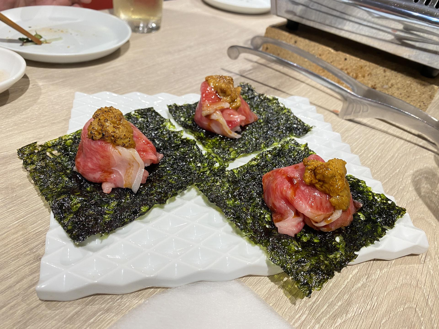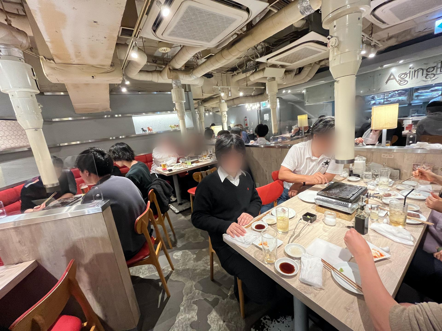 ホルモンや序盤に来たタン塩・肉寿司を追加するテーブルもチラホラ…