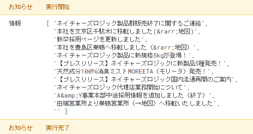 }今回は弊社HPのTOPICSに記載の文字列を抽出します。