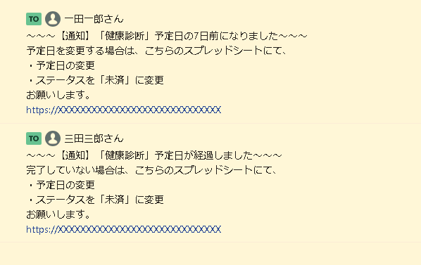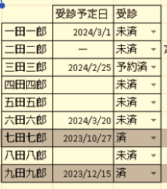 ・予定日が入力済かつsysdateより後の場合、受診確認の通知を飛ばし、STATUSを「完了」としてグレーアウトする