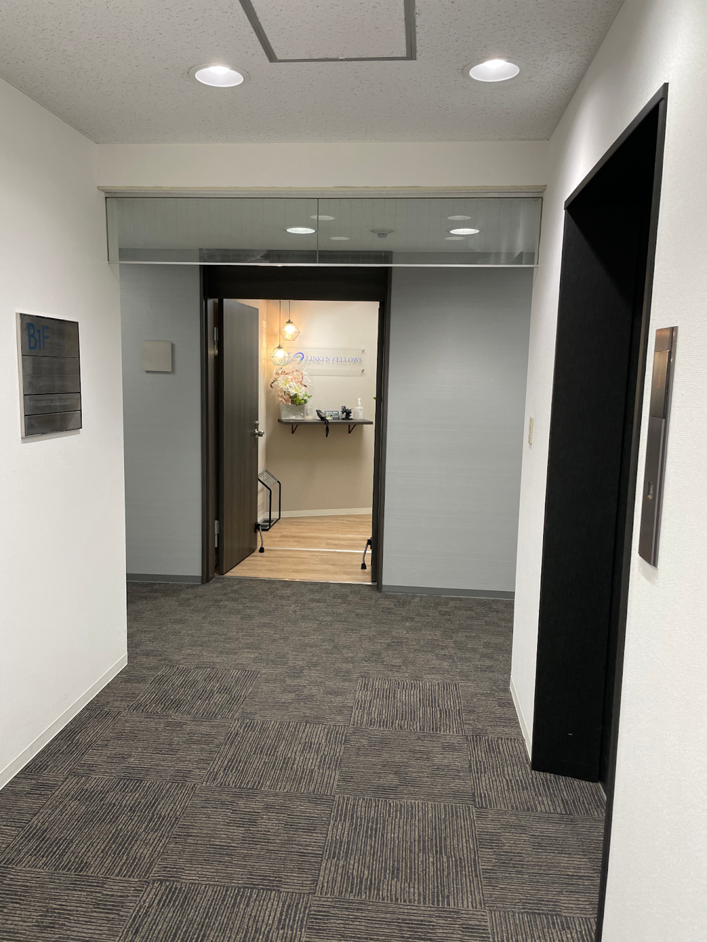 B1でエレベーターを降りたら、すぐ右手に見えるのがエントランスです。