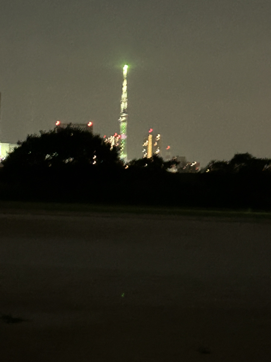 このコースの良い点は、河川敷を走っている際、右手方向にスカイツリーが見えることです。
