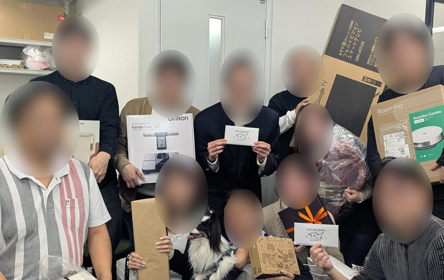 最後に全員で手にした景品と一緒に記念撮影。