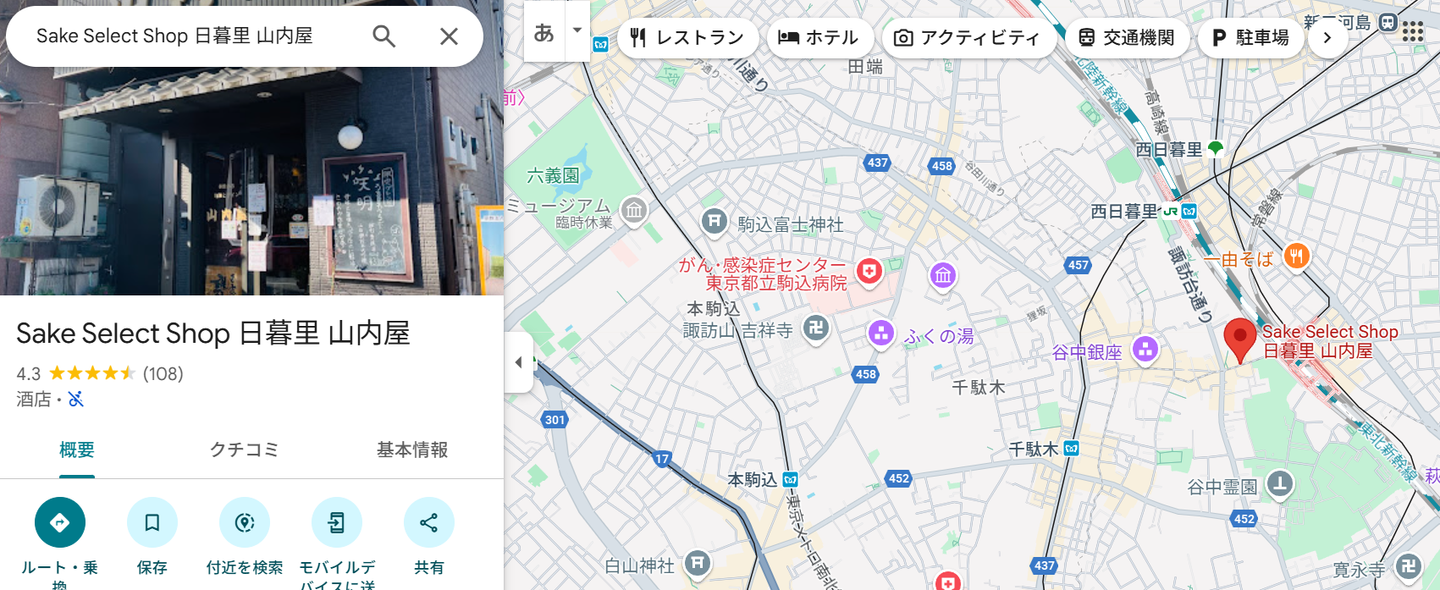 日暮里駅の西口を出てすぐのところにある山内屋さん。