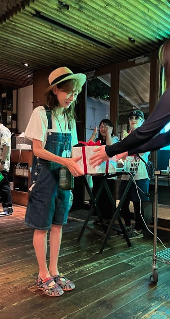 賞品付きベストドレッサー賞もあり、今回は今年4月入社の新卒2名の社員が審査員となり、Party中に皆さんのコーデをこっそり審査。今年の夏は、Forbes JAPAN編集部のメンバーが受賞いたしました!麦わら帽子にオーバーオール、そして虫かごさげて、まさに小学生の夏休みを思い出す可愛らしいコーデでとっても素敵😃