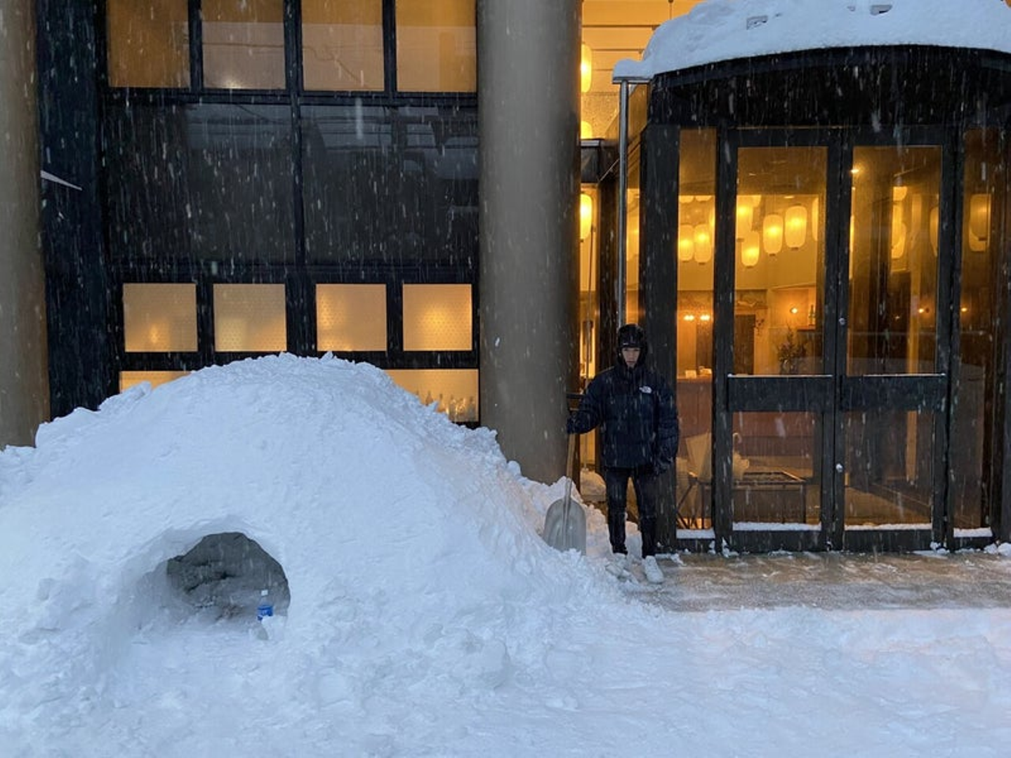 (全力で雪山づくりをするLINNAS立ち上げプロジェクトメンバーのTim。休みの日はひたすらみんなで雪山作って遊んでました笑)