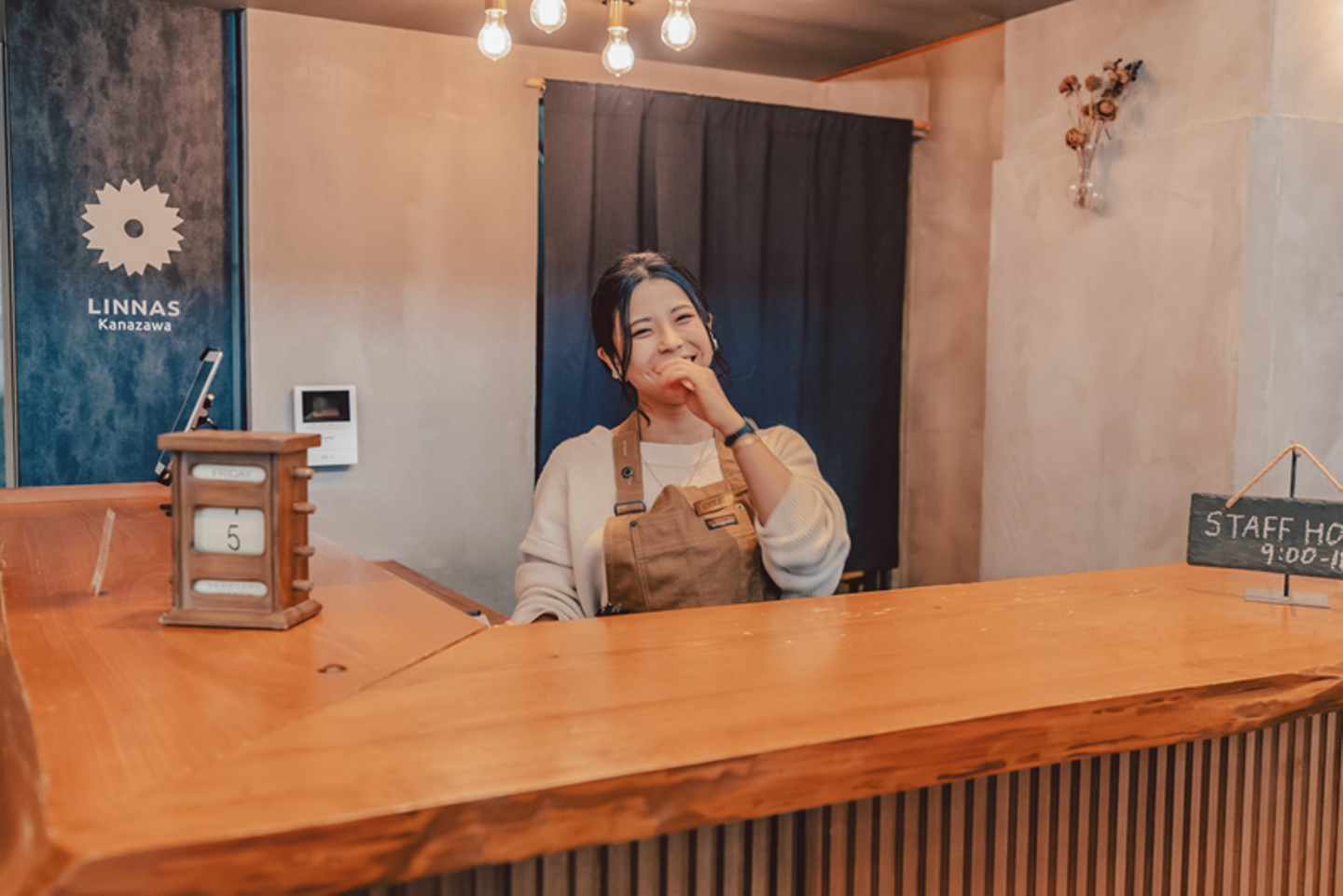 「LINNAS Kanazawa」に帰ると笑顔でスタッフさんが出迎えてくれた。