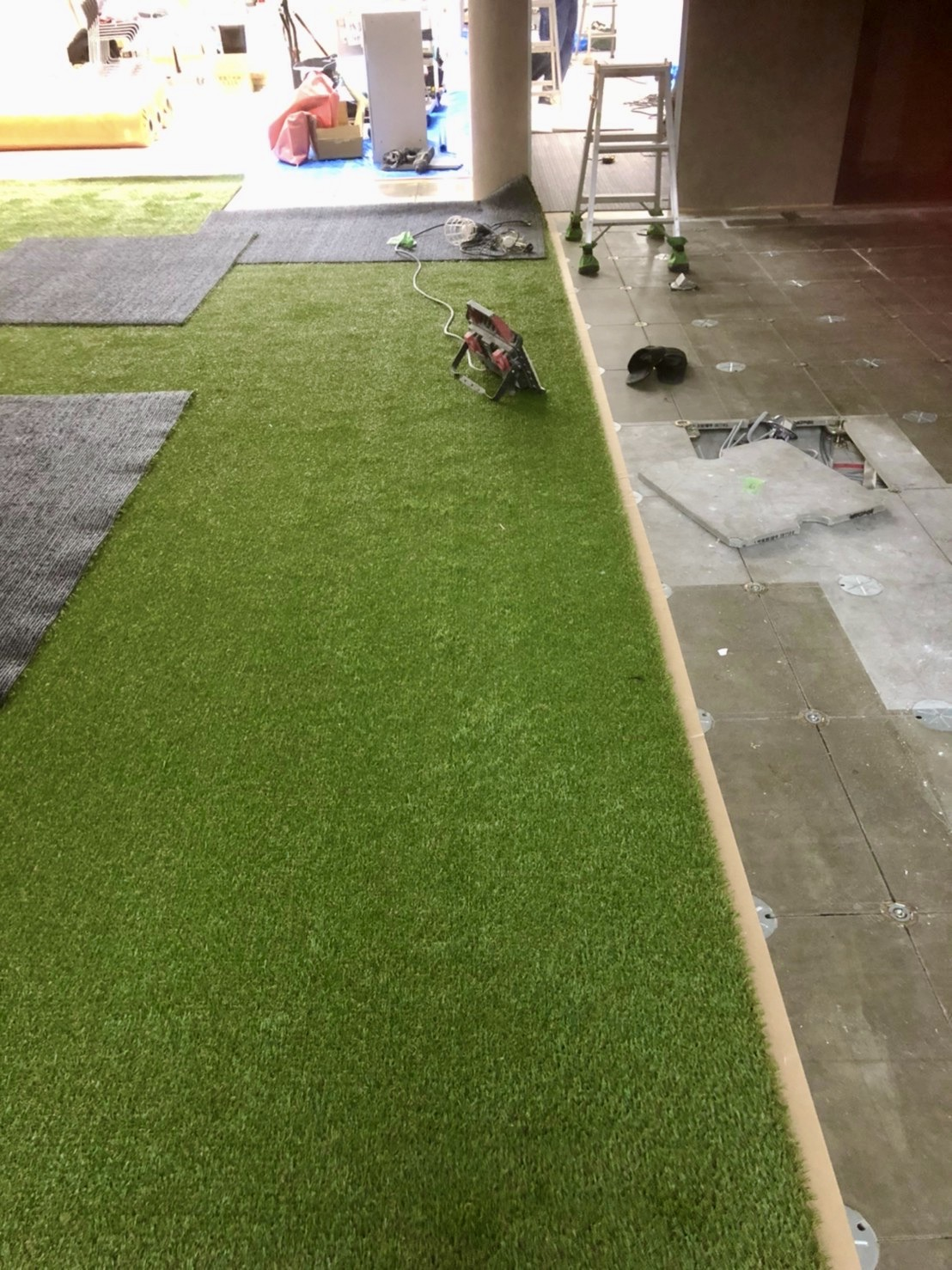 少し時間が進み、ビニールシートだったところに芝生が〜!