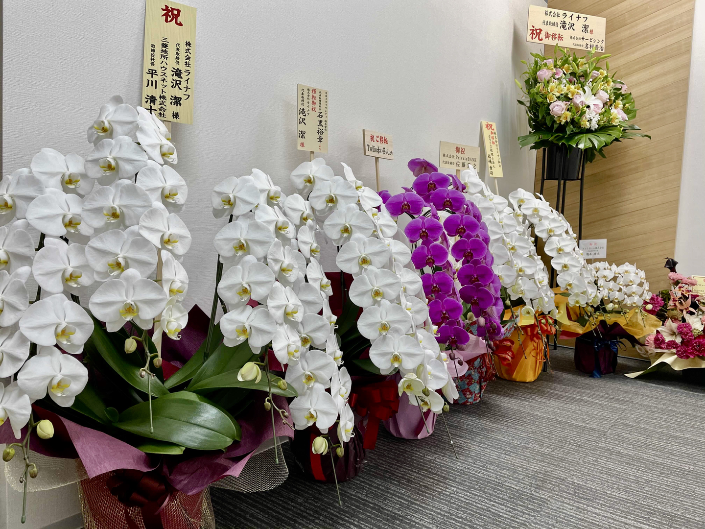 受付を飾る花々。みなさまありがとうございました!