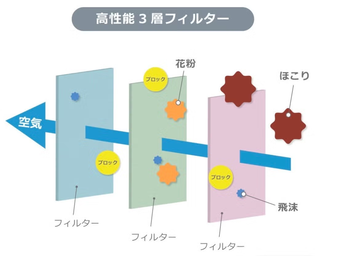 - 3層フィルター設計でBFE/PFE99%カットを実現