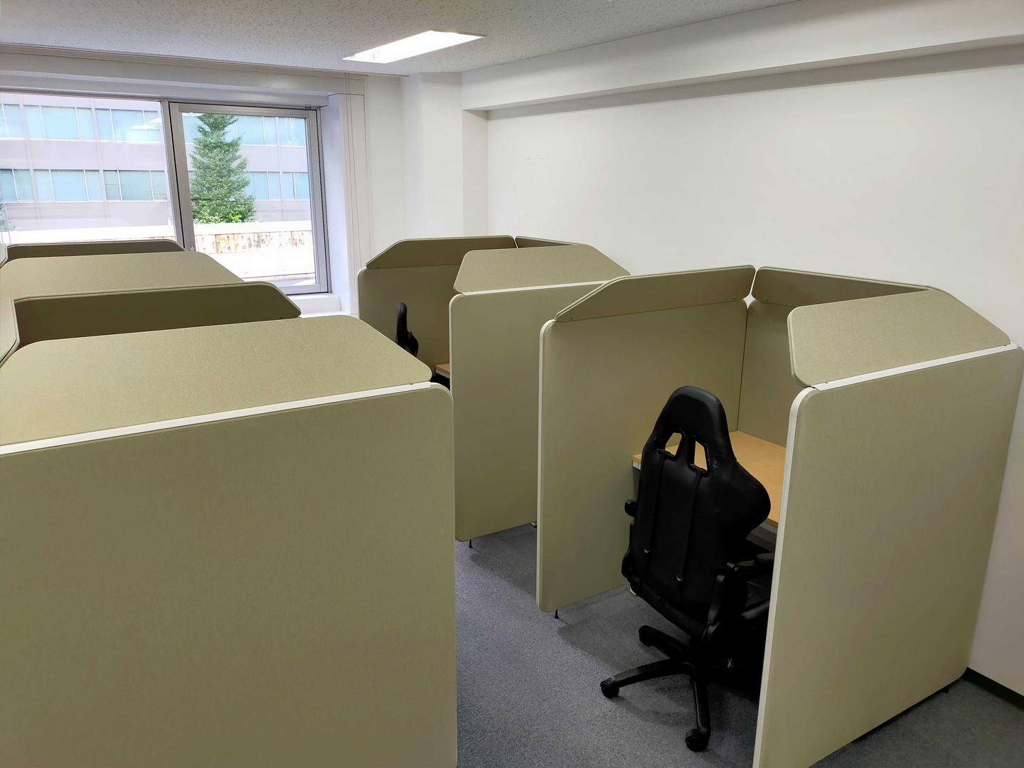 新オフィスでは20名分の執務スペースの他、オンライン会議に適切なブースを設置。偶発的なコミュニケーションが生まれるよう、オープンなレイアウトを基本としています。